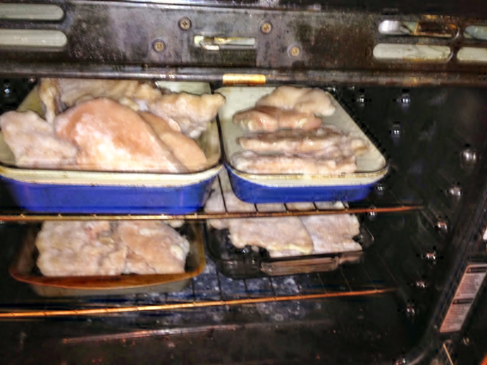 -18 lbs of chicken- We use six 3lb. bags of frozen chicken breast (If your chicken is not frozen, cooking temperatures and times will not be the same!)