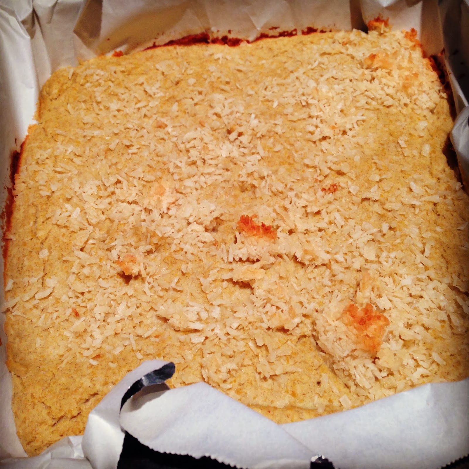 (Reserve 1/2 c. coconut for sprinkling on top)