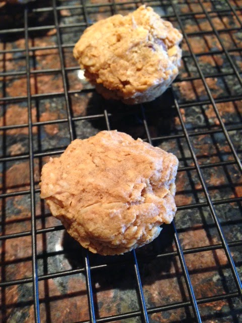 Bake on 325 for about 5 minutes, then rotate pan to ensure even cooking. Continue to bake for about 5 more minutes. Pull out pan and allow cookies to cool, use a spoon to pop out onto a cooling tray if needed.